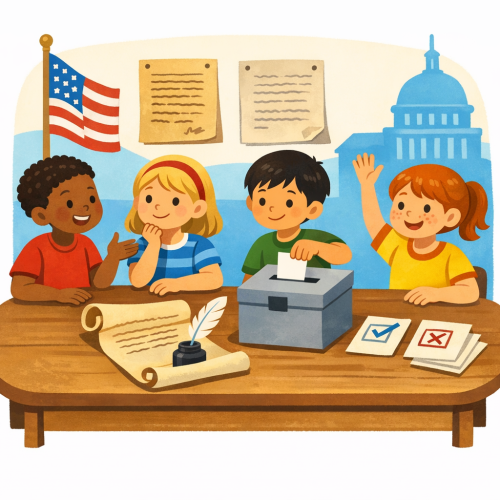 Students will investigate how democratic principles show up in real classroom life by studying a primary source image and interviewing real users (a classmate and a school adult). They will create an empathy map grounded in quotes and observations to understand what makes their classroom feel fair and how decisions should be made.